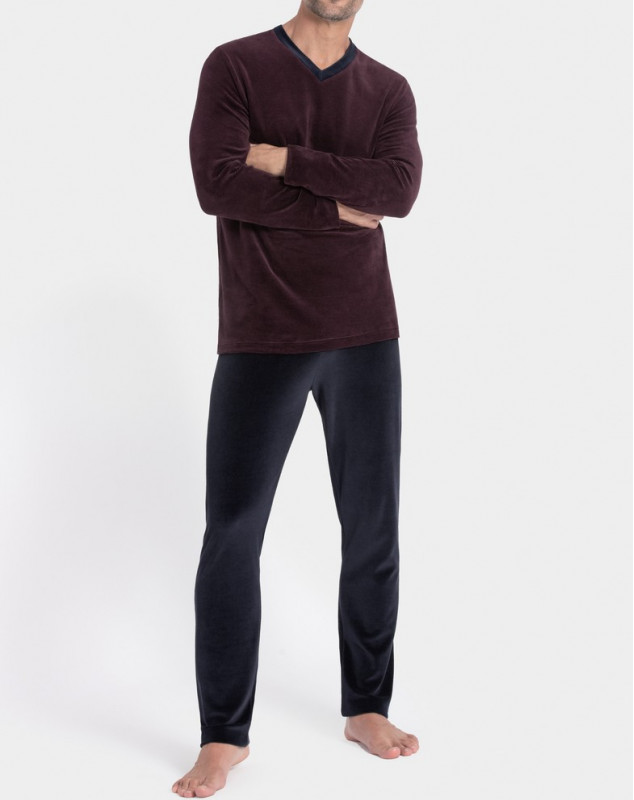 T-shirt à manches longues col V à texture à rayures et pantalon uni avec poche arrière..85% Coton 15% Polyester